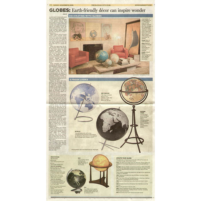 2006, Shopping Feature, Kansas City Star, New World View, Decorating with Globes