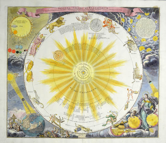 Two works from the George Glazer Gallery were among the nearly 70 artworks from various cultures and eras included in Cosmologies, a thematic exhibition at the James Cohan Gallery in the Chelsea neighborhood of New York City. The exhibition explored images of “the universal” from the 10th century to the present, intended as “a visual montage of the many approaches to giving shape and order to a world view.” On loan from the George Glazer Gallery were a Homann celestial map and an Italian Ptolemaic armillary sphere c. 1900.