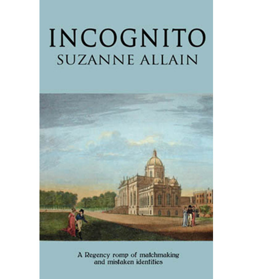A hand-colored copperplate engraving from the George Glazer Gallery appears on the cover of the 2009 paperback edition of the novel Incognito, a romantic comedy by Suzanne Allain set in Regency England. A View of the Noble House and Part of the Garden of Castle Howard was drawn and engraved by A. Walker for Laurie & Whittle, London: c. 1800-10. View more details about the engraving.