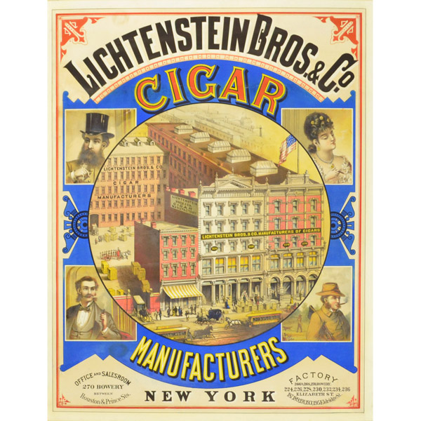 Lichtenstein Bros. was a major cigar manufacturer during the second half of the 19th century, employing 1,000 workers in their Manhattan factory at the end of the 19th century. They were in business from at least the 1860s. The firm later merged into the United Cigar Manufacturing Co., which in turn became the General Cigar Co.