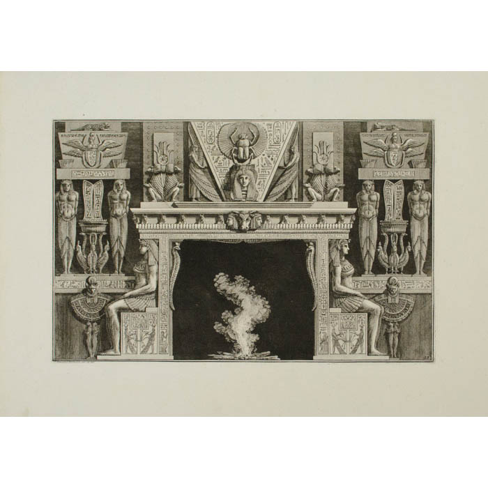 Full title: Diverse Maniere d’adornare i cammini ed ogni altra parte degli edifizi desunte dall’architettura Egizia, Etrusca, e Greca con un Ragionamento Apologetico in defesa dell’Architettura Egizia, e Toscana, opera del Cavaliere Giambattista Piranesi Architetto. [Diverse Ways of ornamenting chimneypieces and all other parts of houses taken from Egyptian, Etruscan, and Grecian architecture with an Apologia in defense of the Egyptian and Tuscan architecture, the work of Cavaliere Giambattista Piranesi.]