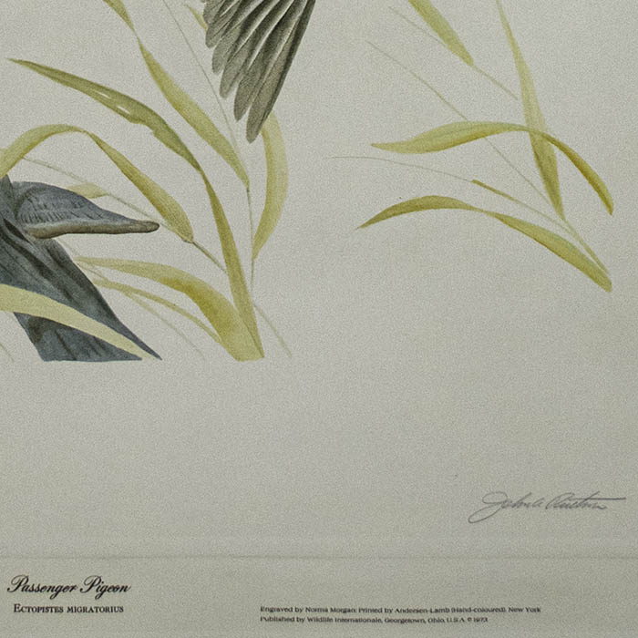 John A. Ruthven was a wildlife artist based in his native Ohio, as well as a naturalist, author and lecturer. A major retrospective exhibition of his work at the Cincinnati Museum of Natural History was titled “John A. Ruthven — In the Audubon Tradition,” an apt characterization since like John James Audubon, his paintings are the result of careful study of the bird in the field as well as from preserved bird skins. In addition, they are rendered in meticulous accurate detail, including plants from their natural habitat as part of the composition. Indeed, the offered aquatint based on Ruthven’s painting was printed on the same type of paper Audubon used for his Elephant Folio. Ruthven selected the colorists for the aquatints, who provided the additional hand coloring to match his original paintings; they each respectively signed the prints in pencil along the bottom edge.