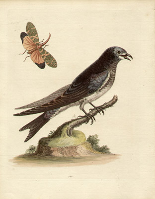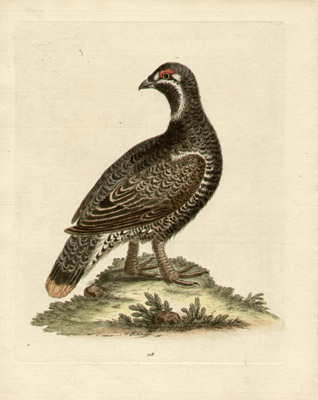 George Edwards was born in Essex, England. He studied art in Holland, but found his true vocation in 1718, when he traveled to Norway and studied the birds that lived on the rocks and in precipices. With the materials he had collected, he applied himself to the study of natural history, making colored drawings of birds and animals, and continued his studies in Holland. Edwards also mastered etching with the assistance of the leading 18th Century British natural history artist Mark Catesby (1683-1749). Edwards made considerable contributions to the study of birds, and held numerous positions as a scholar and scientist. Indeed, he is generally considered the father of modern British ornithology. In 1733, he was appointed as Librarian at the Royal College of Physicians. Edwards also served as secretary to Sir Hans Sloane, who had a private museum and was president of the college and of the Royal Society. Edwards was honored with the Gold Medal of the Royal Society and elected a Fellow. His descriptions and pictures of birds provided reference material for the renowned Swedish biologist Carolus Linnaeus (1707-1778), who gave scientific names to 350 bird species described by Edwards.