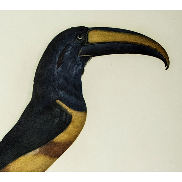 François Levaillant (1753-1824) was a naturalist, the son of the French consul to Dutch Guyana. Sponsored by a patron to find specimens for his collector’s cabinet, Levaillant made a six-month expedition to Africa, landing at the Cape of Good Hope in 1781, and returning to France in 1784. In Africa, he observed the habits of birds and amassed a major collection of specimens, also discovering some 50 new species. This became the basis of his monumental six-volume work Histoire Naturelle des Oiseaux d’Afrique, Paris: [1796-] 1799-1808. This work was the only substantial bird study published on Africa during that period, containing over 300 illustrations, and still admired today for the quality of the prints and lively style of writing. In the first decade of the 19th Century, Levaillant published three folio sets of tropical bird studies based on the magnificent original watercolors by Jacques Barraband (1767-1809): Histoire Naturelle des Oiseaux d’Afrique, Paris: [1796-] 1799-1808. This work was the only substantial bird study published on Africa during that period, containing over 300 illustrations, and still admired today for the quality of the prints and lively style of writing. In the first decade of the 19th Century, Levaillant published three folio sets of tropical bird studies based on the magnificent original watercolors by Jacques Barraband (1767-1809): Histoire Naturelle des Perroquets. Paris: 1801-1805; Histoire Naturelle des Oiseaux de Paradis et des Rolliers, suive de celle des Toucans et des Barbus, Paris: [1801-] 1806 and Histoire Naturelle des Promérops, et des Guêpiers, Paris: [1806]- 1807-[1816?]. These are considered among the greatest colorplate ornithological studies ever done.