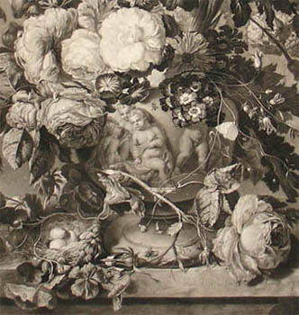 Richard Earlom was a leading British mezzotint engraver of his time, though he also produced some etchings and plates in the chalk style. His first engravings were for John Boydell, and include Liber Veritatis, 200 plates after landscape drawings by Claude Lorrain. He also engraved prints and portraits after old masters such as Rembrandt, Poussin, Guercino and Rubens. Other major works include flowers after van Huysum, van Os, and Robert John Thornton, for the latter’s famous Temple of Flora (London: 1799-1807).