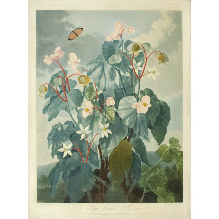 Robert John Thornton began his career as a doctor. In 1797, he opened a successful practice in London. Meanwhile, he had become deeply interested in botany under the influence of Thomas Martyn’s lectures and the writings of Linnaeus. In 1797, he also began advertising for subscribers to his planned natural history publishing venture, which eventually became known as The Temple of Flora, comprised of 30 folio botanical plates (generally issued with just 28), as well as two classical allegorical plates. It was originally published as the third section of an extensive and ambitious botanical publication titled New Illustration of the Sexual System of Linnaeus.