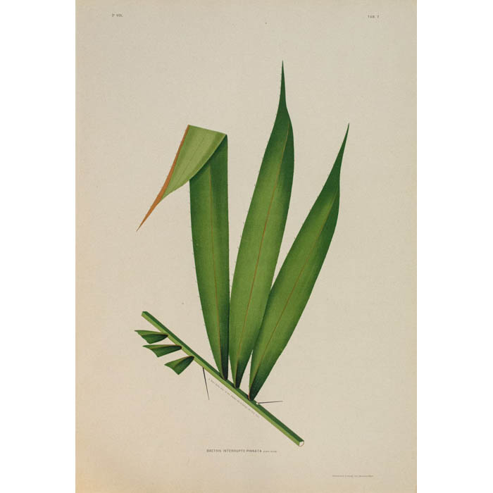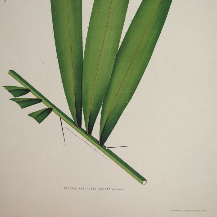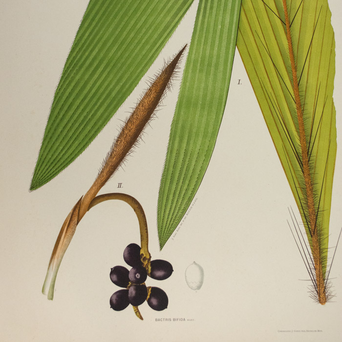Rodrigues received a classical education in Rio di Janeiro. After graduating he became an art professor with a growing interest in the natural sciences, especially botany. Between 1868 and 1897, he traveled around Brazil, pursuing scientific research and collecting botanical specimens, particular orchids. In 1871, he spent almost three-and-a-half years in the Amazon where he lived with his family on assignment from the Brazilian government to study palm trees. In 1883, he organized and directed the Botanical Museum in Manaus, then directed the Botanical Garden of Rio de Janeiro from 1890 until 1909. Rodrigues worked for many years on a major study of Brazilian orchids and published the text, but it was one of the great disappointments of his life that he never was able to obtain funding to publish them with the illustrations he had made. However, the Brazilian congress granted funding to support his major study of Brazilian palms, Sertum Palmarum Brasiliensium (1903). The book was published in Belgium, then a center for fine printing of color plate botanical works.