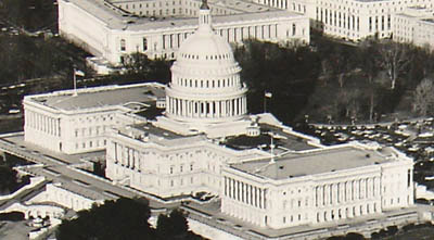 Original aerial photograph taken by Charles E. Rotkin of Capitol Hill, Washington D.C., for his book The U.S.A.: An Aerial Close-Up. This photograph is published on pages 30-31 of that work, with Rotkin’s description: