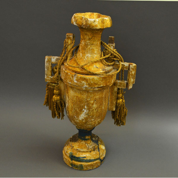 Tags: antique urn, antique vase, baroque, giltwood, prop rental, tassels