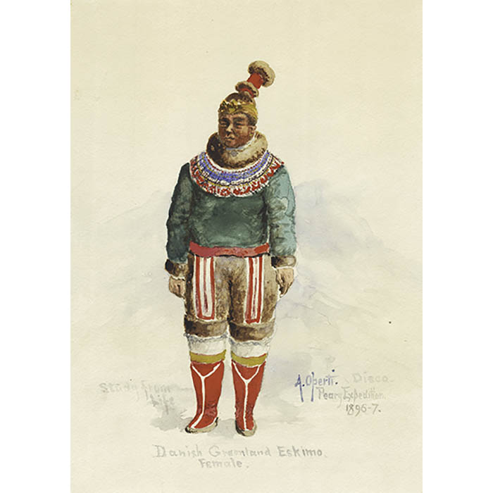 Full inscription: Study from Life. Danish Greenland Eskimo. Female. A. Operti. Disco. Peary Expedition. 1896-7.
