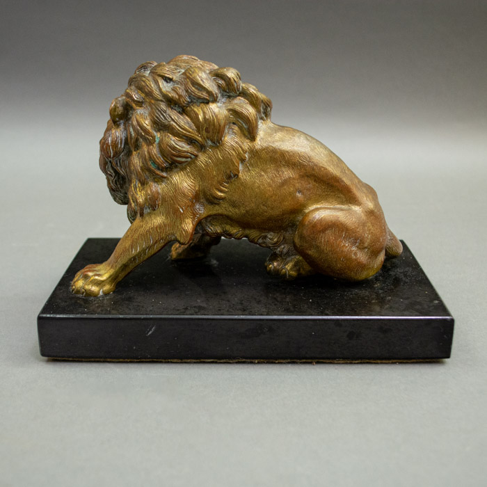 Figurine, Lion, Gilt Metal, Marble Base, Antique, c. 1900