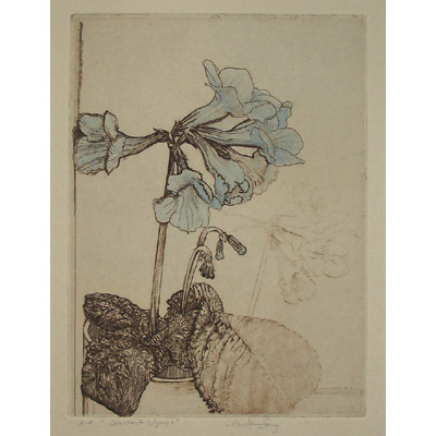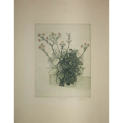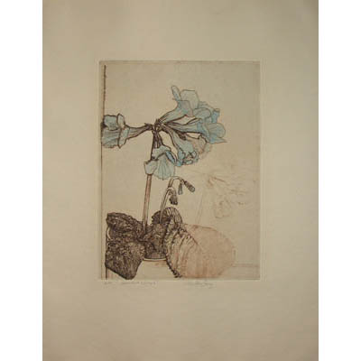 Claude Gerald Saucy was a Swiss-born printmaker and educator whose primary media were wood engraving, copperplate engraving, and etching. He studied art in Switzerland under Max Bill, a Swiss architect, artist, painter, typeface designer, industrial designer and graphic designer. Saucy spent his early career as an artist and teacher in Switzerland where he became known for his black and white surrealistic prints. He moved with his family to Connecticut in 1966 to become Head of the Art Department at the Kent School, a private college preparatory school, a position he held until he retired in 1993. Although his later work included color monoprint woodblocks, the offered color-printed botanical prints are an unusual subject matter for him. Saucy is included in the Biografisches Lexikon der Schweizer Kunst [Biographical Dictionary of Swiss Artists] (1998).