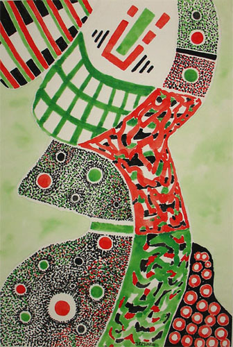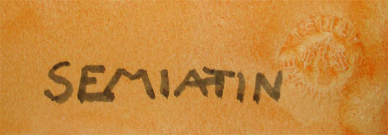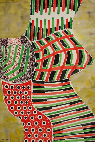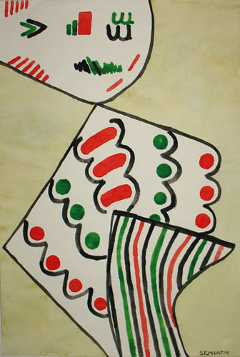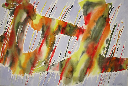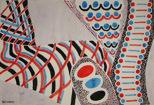Jacob Semiatin was an American painter working in watercolor, acrylic and oil. Born in Ireland to Hungarian Jewish parents, his family immigrated in 1920 to New York City, where he spent the rest of his life. In the early years of his career (late 1930s and 1940s) he exhibited with the Brooklyn Society of Artists. After serving in the military during World War II, he returned to New York and switched from figurative to abstract painting. His first solo exhibition of abstractions was held at the Contemporary Arts Gallery in New York. Semiatin also exhibited at the Brooklyn Museum, which today has his work in their collection. His works are also in the collections of The Houston Museum of Modern Art and The Jewish Museum of Dublin, Ireland.