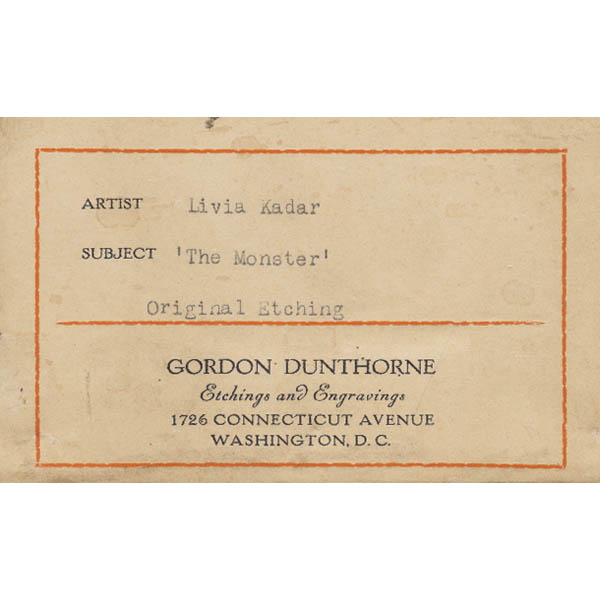 Livia Kádár, nee Mihaly, was a Hungarian painter and printmaker who mostly made small etchings. She is known for imagery based on Christian and medieval legends as well as allegorical figures in a style allied to Jugendstil and Symbolism. She received her early training in Budapest. In 1909 she traveled to Paris, then Algiers, then Belgium. After World War I, she moved with her husband back to Paris. In the mid 1920s, she exhibited her works in London and in Paris, including the Salon, where she was a member. She also illustrated books, including a collection of fairy tales written in English. After 1928, she lived in the United States and exhibited in major cities around the country. Today her works are in the collections of the British Museum, the Cleveland Museum of Art, the Museum of Fine Arts in Boston, and the Victoria and Albert Museum in London.