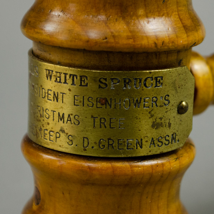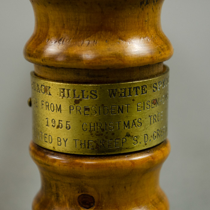 Brass plate: Black Hills White Spruce Made from President Eisenhower’s 1955 Christmas Tree Presented by the Keep S.D. Green Assn.
