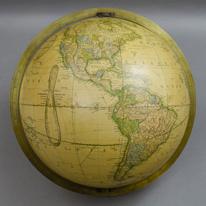 Joslin & Son’s globe handbook (issued later than the offered Joslin globe) states that their globes were useful for instructing students in geography and “[f]or library or office use [were] no less valuable, showing…at a glance, the true relative situations of Political and Geographical Divisions, Cities, etc., the world over.” The handbook also enumerated various “advantages” of Joslin globes: