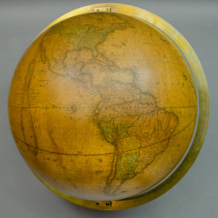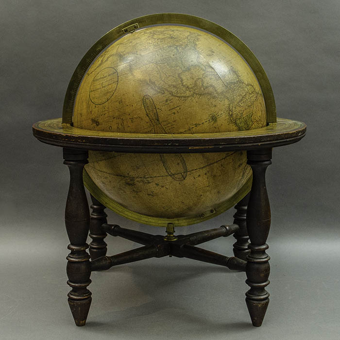 Josiah Loring, together with his successor Gilman Joslin, were among America’s greatest globe makers. Loring began his globe business in Boston in the early 1830s. Early Loring globes were either imported from C. Smith & Sons, one of the leading British globe makers of the late Georgian period, or re-engraved versions of Smith & Sons globes. Joslin began making globes for Josiah Loring in 1837, and took over the business a few years later producing globes under the Loring name and under his own name. Joslin was joined by his son William B. Joslin in 1874 and the firm continued in operation as Gilman Joslin & Son until about 1907.