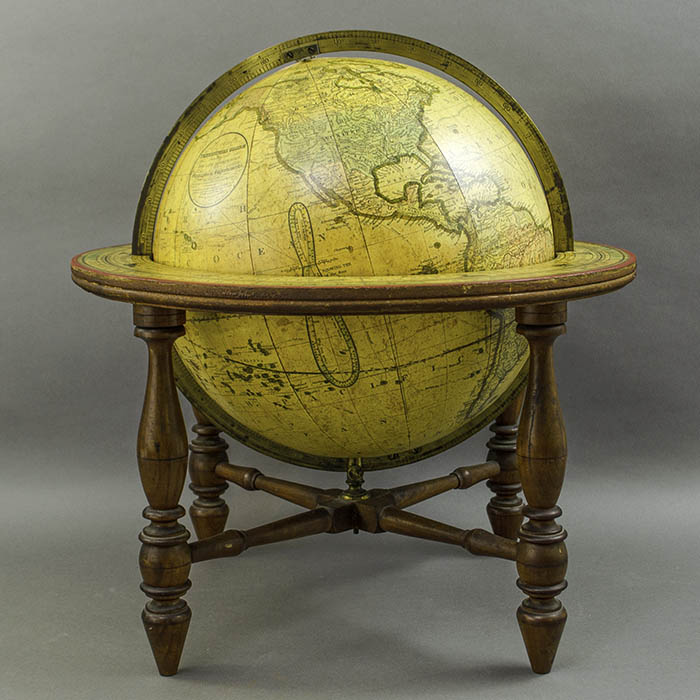 Gilman Joslin (1804-c. 1886), one of America’s most prolific globe makers, began making globes for Josiah Loring (1775-c. 1840) in 1837, and took over the business two years later. Loring had begun selling globes in 1832. He advertised that his globes were superior to British globes of the period. Yet early Loring globes were either imported from C. Smith & Sons, one of the leading British globe makers of the late Georgian period, or re-engraved versions of Smith & Sons globes. Gilman Joslin began as a wood turner and maker of looking glass mirrors. After taking over Loring´s business, he began producing globes under the Loring name and under his own name. Joslin set up a globe manufacturing facility in Boston and by 1850 had five workers. Gilman Joslin was joined by his son William B. Joslin in 1874 and the firm continued in operation as Gilman Joslin & Son until 1907.