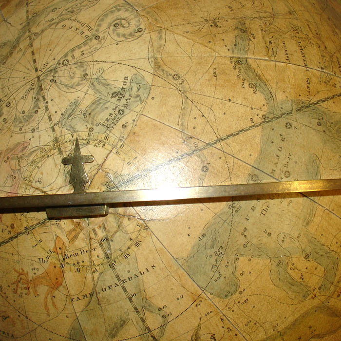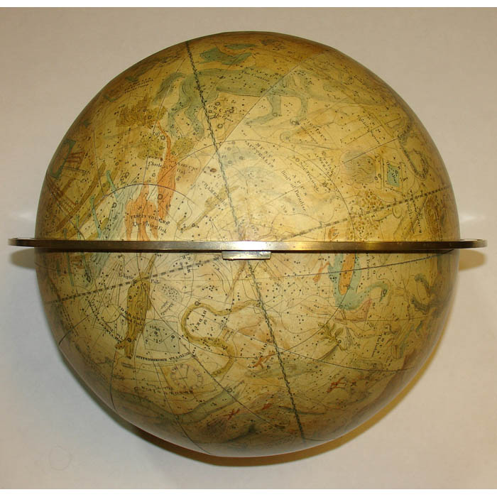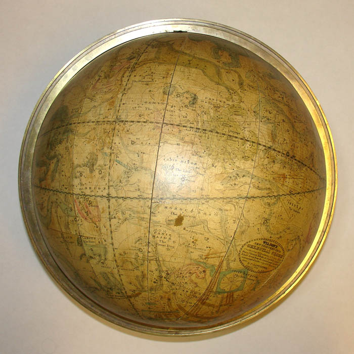 Oval Celestial Cartouche: WILSON’S/ NEW THIRTEEN INCH/ CELESTIAL GLOBE/ Containing the positions of nearly 7000/ Stars, Clusters, Nebulae, &c. Carefully compil’d/ & laid down from the latest and most approv’d/ astronomical tables reduced to the present/ time,/ By C. Lancaster,/ 1840/ Albany, St. N.Y.