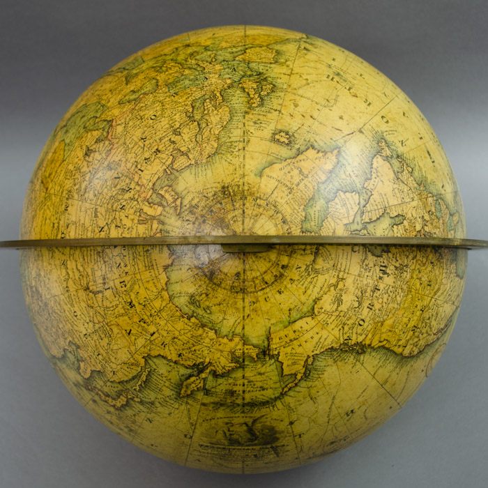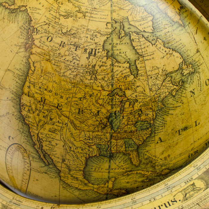 A James Wilson globe should be the cornerstone of any major collection. James Wilson (1763-1855), a Bradford, Vermont, farmer and blacksmith by trade, is the father of American globe making. Wilson was the first American to manufacture globes, having been inspired by European globes he saw at nearby Dartmouth College. A self-taught geographer and engraver, he not only made the globe spheres but designed, engraved and printed the cartographic gores for them. Wilson began his business in Bradford in about 1810 and in 1815 moved to New York State, opening a larger and better-equipped globe manufacturing facility at 110 Washington Street in Albany. In 1817, his eldest son Samuel joined the business and the following year, his son John became a primary partner with his father. Another son, David Wilson worked briefly in the family business, designing a three-inch globe. The firm of J. Wilson & Sons quickly became known as a globe making family enterprise. Cyrus Lancaster, a graduate of Dartmouth College and a school instructor, joined the firm in 1827. Following the deaths of Samuel and John Wilson, Lancaster continued as business manager, and two years later became a member of the family, marrying Samuel’s widow, Rebecca. Lancaster produced a number of globes in Albany under the Wilson name, the last dated one in 1845.
