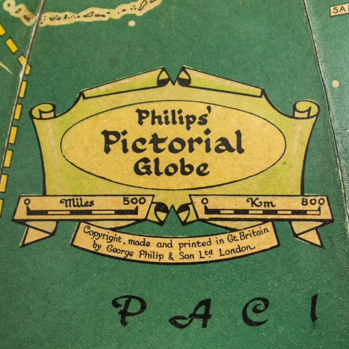 Cartouche: Philips’/ Pictorial/ Globe/ Copyright, made and printed in Gt. Britain/ by George Philip & Son Ltd. London.