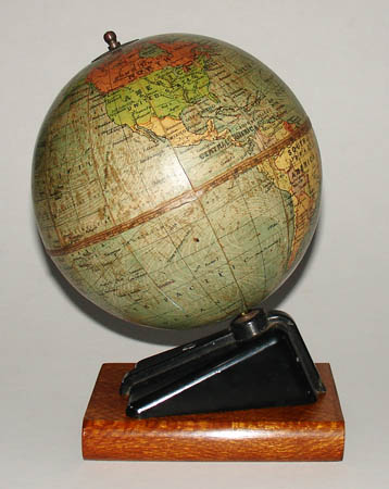 Oval cartouche, terrestrial globe: PHILIP’S/ 6 inch/ TERRESTRIAL GLOBE/ LONDON/ GEOGRAPHICAL INSTITUTE/ GEORGE PHILIP & SON, LTD. 32 FLEET STREET/ PRINTED IN GREAT BRITAIN.