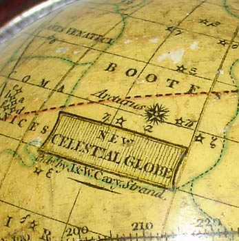 Cartouche: NEW CELESTIAL GLOBE Pubd. By J. & W. Cary, Strand.