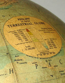 George Philip & Son began as a map and atlas publisher in Liverpool, England in 1834.  In 1902, the firm relocated to London and emerged as one of the major globe producers of the 20th century.  Read more on our Guide to Globe Makers.