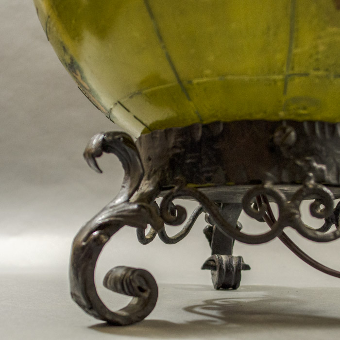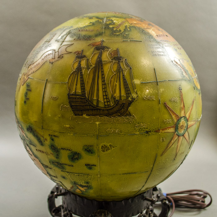 Electrified painted glass globe on cast iron base