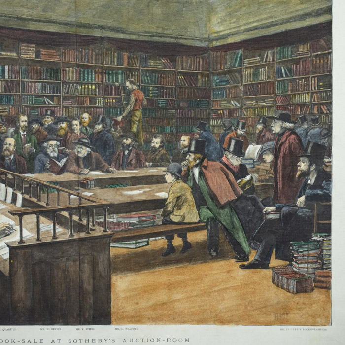 The Graphic was an illustrated London weekly newspaper launched in 1869 by William Luson Thomas (1830-1900). By 1882, advances in printing technology accelerated the process by which illustrations were converted to woodblocks for printing, so that pictures of events could be published within a few days, and The Graphic became a major publication employing over 1,000 people. It commissioned illustrations of current events from pole exploration to the flogging of a criminal at Newgate Prison, and slices of London life such as a Sotheby’s auction or a scene in a women’s twopenny lodging house. They also published well-regarded artistic illustrations of such subjects as a series on Shakespeare’s heroines. Hubert von Herkomer, one of the artists, wrote of its importance to social realist artists: “It is not too much to say that there was a visible change in the selection of subjects by painters in England after the advent of The Graphic. Mr. Thomas opened its pages to every phase of the story of our life; he led the rising artist into drawing subjects that might never have otherwise arrested his attention; he only asked that they “should be subjects of universal interest and of artistic value.” In 1889, Thomas and his company, H. R. Baines and Co, began publishing the first daily illustrated newspaper, the Daily Graphic. After he died in 1900, his son, Carmichael Thomas, ran the company. The Graphic ceased publication in 1932.
