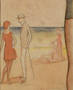 Illustration Art, Beach, Swim Suits, Critique Magazine, Antique Watercolor, 1915