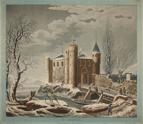 Full publication information, Le Château: Aubertin invenit et sculpsit. Imprimé par Bassan. A Paris, chez Vilquin, Md. d’Estampes, Grande Cour du Palais Royal, No. 20. Deposé à la Direction Impériale. Inscribed upper right margin: No. 2782.