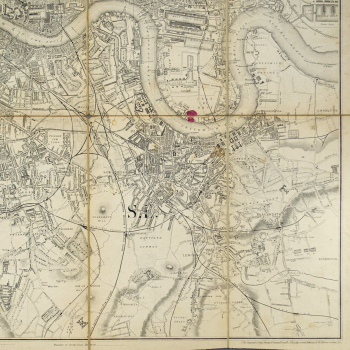 Handwritten inscription on inner cover: “With care/ Map of London given to me by my Brother Joseph on my last visit to England. 1883”