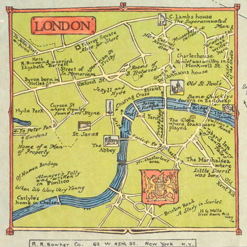 R.R. Bowker Co. was founded in 1872 and today is the official U.S. ISBN Agency, as well as a major publisher of reference books and directories. The company published various pictorial maps in the mid 20th century, including ones by Paul. M. Paine and Amy Jones.