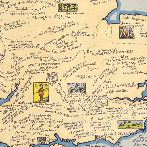 Paul Mayo Paine (who typically signed his maps Paul M. Paine) designed or co-designed several pictorial maps during the 1920s and 1930s. He served as a librarian at the Syracuse [New York] Public Library from at least 1919 to at least 1931, and was active in the American Library Association. His maps reflected his occupation as a librarian, with either literary or historical themes: Map of Adventures (1925), The Booklovers Map of the British Isles(1927),A Map of the History of New York State(1928),Map of Great Adventures (1928), Map of the History of Pennsylvania (1931) andThe Booklovers Map of America(1939). He also collaborated with Grace Raymond Hebard on Map of the History and Romance of Wyoming (1928).