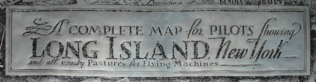 The map utilizes the unusual print process of ink on aluminum metal foil, embossed in relief, which suits the aeronautical subject matter. Each map was apparently hand printed and inked by the artist, who would then add custom elements such as the dedication (George Glazer Gallery has owned another example with a different dedication).