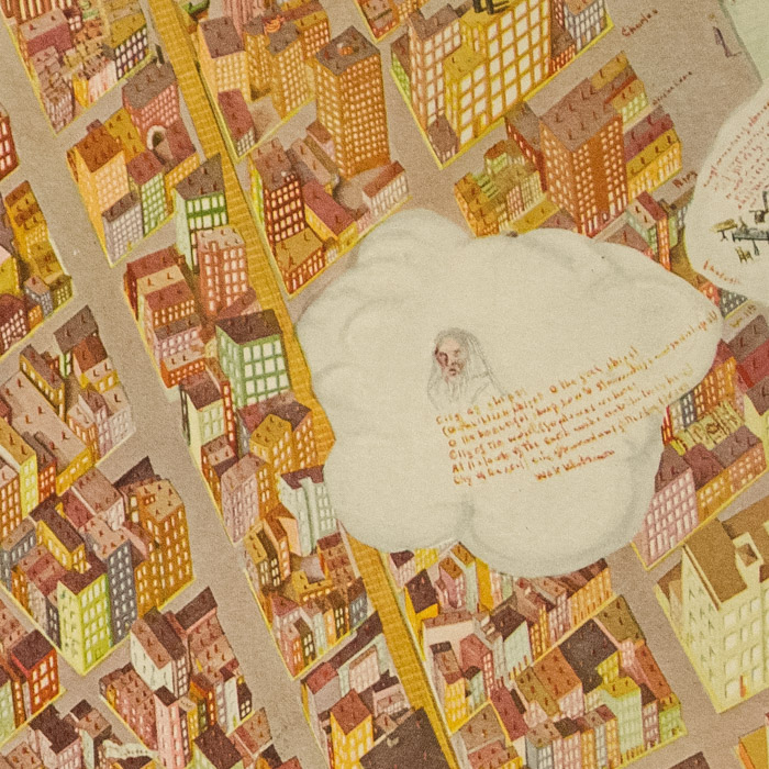 Mr. Klitgaard, who spent a number of years at sea, understands that maps, however ornamental, can also be useful. Consequently one can find one’s way with the aid of Mr. Klitgaard’s map to all the points of interest in the Village, whether it be the Cunard Steamship piers, Wanamaker’s, the Whitney Studio Club or historic points with which great artists have been associated in the past. Many figures of the past are noted on the map — Walt Whitman Alfred Collins and others — and, as if he believed that no map could be complete without a touch of whimsicality, Mr. Klitgaard has exercised his kindly wit upon a number of the artists who are associated with the Village today.