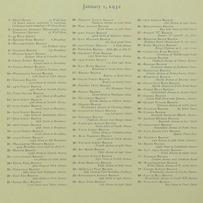 Full publication information, lower right margin: ©1932, The National City Bank of New York