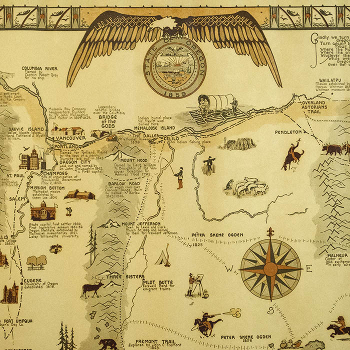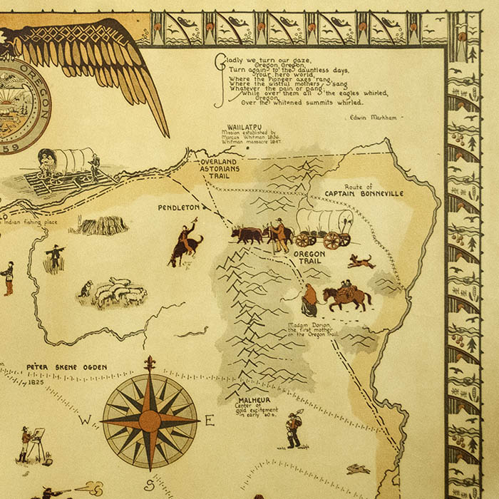 In the upper right corner of the map is a poem by Edwin Markham (1852-1940), founder of the Poetry Society of America in 1910 and Oregon’s first poet laureate (1923-1931):