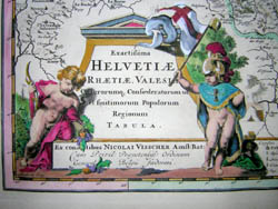 The Visscher map publishing firm was operated in Amsterdam by three generations of men all named Nicolaus Janszen Visscher (sometimes written Claes Jansoon Visscher) throughout the 17th century and into the early years of the 18th. The founding Nicolaus (1587-1652) was succeeded by his son (1618-1679) and grandson (1649-1709). Their publications include Atlas Contractus (1660) and Atlas Minor (1680), and their plates were extensively utilized by other mapmakers in Holland and abroad.