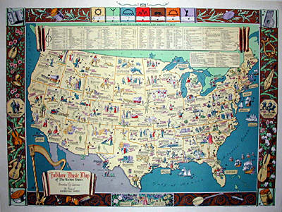 Dorothea Dix Lawrence was a successful soprano opera singer in the 1930s and 1940s, then became a leading champion and scholar of American folk music. She gave hundreds of lecture-recitals across the United States and Europe with a repertoire ranging from a variety of Native American songs in their original languages to Americana songs by established composers. Her Folklore Music Map of the United States was copyrighted in 1946 and subsequently widely distributed in American schools. She later published her songs in the book Folklore Songs of the United States. Lawrence gave “Musically Mapping America” talks throughout the United States and Mexico until her retirement in 1970. Her papers are in the Dorothea Dix Lawrence Collection at the Library of Congress.