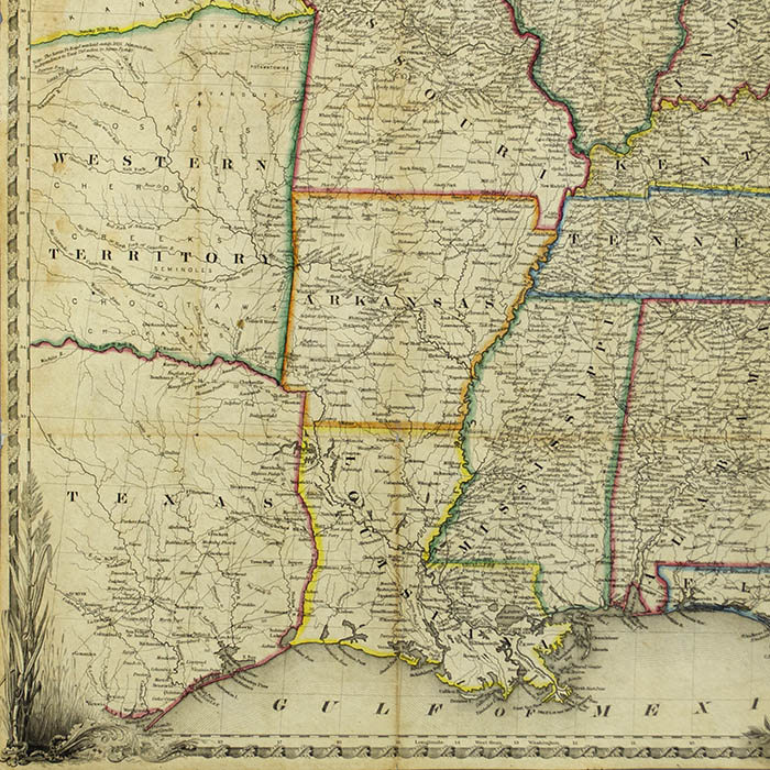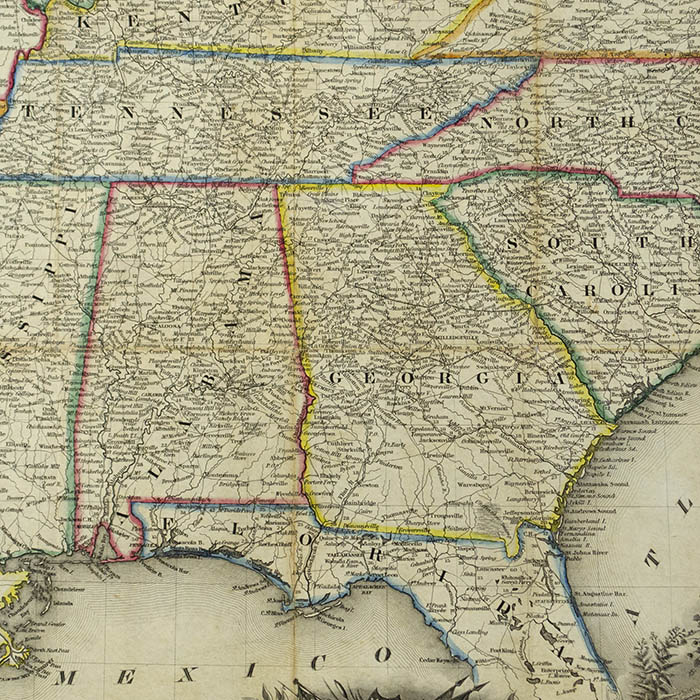 Condition: Generally very good with the usual overall light toning, wear, handling. Formerly a folding travelers map with folds as issued, now professionally flattened and backed with Japanese paper. With some remaining minor wear, discoloration, losses at folds and intersections. Margins short as issued. Original covers lacking.