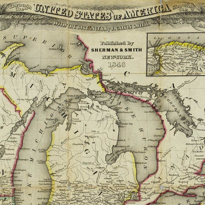 Sherman & Smith was an American map publishing firm based in New York City from 1840 to 1853 It was a partnership between the engraver George E. Sherman (born 1810/11) and the surveyor, geographer, and engraver John Calvin Smith (1809-1890). They produced many maps and engravings for government publications, such as the official records of the 1838-1842 United States Exploring Expedition. They also produced maps for the Army Corps of Engineers and New York State Geological Survey, along with U.S. coastal surveys and railroad maps. Sherman worked as an engraver in New York from 1840 until at least 1860. Smith began working in New York in 1835. He was a charter member of the American Geographical Society. Sherman & Smith sometimes published as Stiles, Sherman & Smith in collaboration with the engraver Samuel Stiles (1796-1861). John Calvin Smith also worked with other cartographers and publishers including John Disturnell and J.H. Colton, and published maps under his own name.