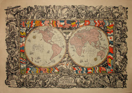 James Henry Daugherty was an American illustrator, best known for his children’s books. Daugherty spent most of his childhood in Washington, D.C. He studied at the Corcoran School of Art and the Pennsylvania Academy of Fine Arts, then spent two years in London as a student of Frank Brangwyn. He began publishing magazine illustrations in 1913. Early jobs also included four murals for Loew’s State Theatre in Cleveland and camouflaging ships. His first book-length illustration project was R.H. Horne’s King Penguin in 1925, followed by S.E. White’s Daniel Boone, Wilderness Scout (1926). His papers are in the University of Minnesota Libraries Children’s Literature Research Collections, with illustration materials for 30 books and manuscripts for five, spanning projects from 1926 to 1964. During his lifetime, Daugherty was honored for his contributions to children’s literature: Daniel Boone, a biography he both wrote and illustrated, won the 1940 Newbery Award, and his illustrations for Andy and the Lion (1939) and Gillespie and the Guards (1957) were runner-ups for the Caldecott Medal. Daugherty was in the news in 2006, when his dramatic 1935 mural, The Life and Times of General Israel Putnam of Connecticut, painted for the WPA and installed in a Greenwich, Connecticut, elementary school, was restored. The cleaning revealed imagery that some community members deemed too strong for children. Thus, the mural was transferred to the Reference Room Greenwich Public Library, where it remains today.