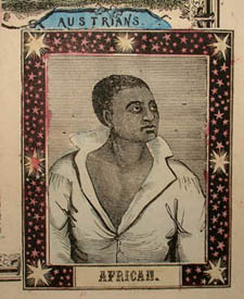 This 1862 map is the last version of five known maps with related titles, illustrations, and themes by related publishers. Pictorial View of the World, the original edition, was published by Humphrey Phelps, copyright 1846. It was on a vertical format, with a small double hemisphere map and various illustrations and statistical tables. World at One View was copyrighted by H. Phelps in 1847 and published by Ensigns & Thayer. It was on a horizontal format, with a larger double hemisphere map, and featured four corner illustrations of races of the world as well as illustrations including peoples of the worlds, and statistical tables. The World at One View was republished from the 1847 edition in about 1852 by Ensign, Bridgman & Fanning (adding “The” to the title). It was very similar to the 1847 edition, with minor variations. Discussing this map, scholar Matthew Edney points out that the underlying message of the various illustrations presents a “vision of the United States of America as the next great world empire.” World at One View was copyrighted and published by Ensign, Bridgman & Fanning in 1854. It was on a vertical format and much larger than the 1852 edition. Like the 1847 and 1852 editions it had a double hemisphere map and featured four corner illustrations of races of the world as well as illustrations including peoples of the worlds, and statistical tables. It also added a time zone table. View of the World was the final and largest edition, published by Phelps & Watson, New York and Rufus Blanchard, Chicago in 1862. It was on a horizontal format with the world map on Mercator’s Projection. Like earlier examples it featured four corner illustrations of races of the world as well as illustrations including peoples of the world and statistical tables. It had two time zone tables and a more elaborate border design of peoples of the world. It also had illustrations of animals, scenery and people engaged in various activities, making it more akin to 20th Century pictorial maps.