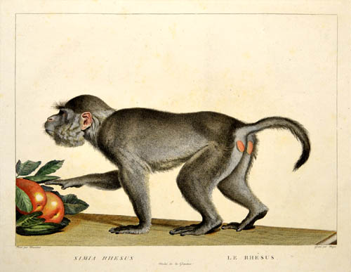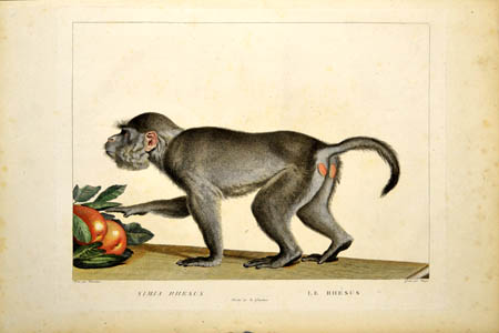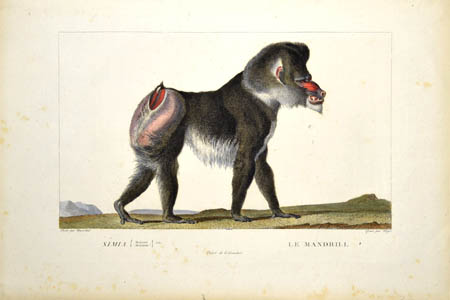 The engraver and co-publisher of this work was Simon Charles Miger (1736-1820), a French printmaker and publisher. He engraved numerous portraits of French royalty, which are in the collections of museums such as the National Gallery of Art, Washington. He also engraved and published books on a variety of subjects, including natural history and philosophical writings by Voltaire and others. The other publisher, Renouard, is identified on the title page of La Menagerie du Museum National d’Histoire Naturelle as a bookseller.