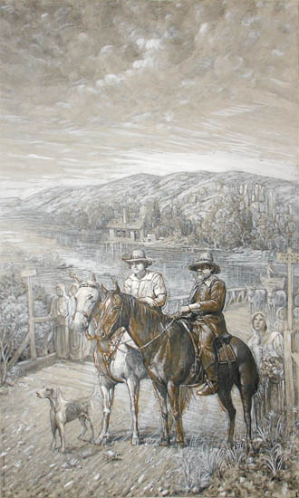Condition: Illustrations on paper very good with the usual overall wear and toning. Some with small paste-over paper elements hand painted, by the artist, as issued, to make changes. Illustrations mounted, as issued, to illustration board. Blank borders on illustration boards with some glue adhesion and chipped abrasions from former matting. Light bumping to edges of illustration boards.