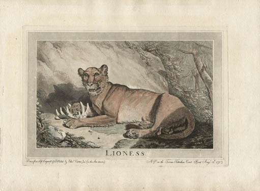 Lioness: “Drawn from Life Engrav’d & Publish’d by Chas. Catton Jun’r (as the Act directs,) No. 7. on the Terrace Tottenham Court Road Aug’t. 12th, 1787.”