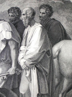 The inscription on the print indicates that the drawing after Romano for the print was made by Michael Sangiorgio: Inscription: Michael Sangiorgio nunc delineavit in Aedibus P. Borghesii Sumptibus Remondinianis [Drawn in the present day by Michael Sangiorgio Piazzo Borghese Building, Remondini Publisher].