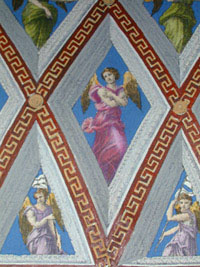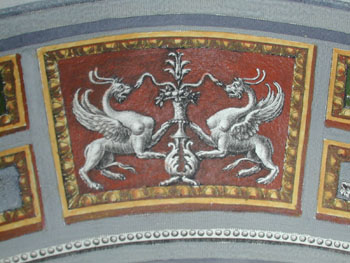 Raphael was one of the three greatest artists of the Italian High Renaissance and an accomplished architect as well. As chief archeologist to the Pope, he was involved in the excavation of the ancient Golden House of Nero, and adapted many of the elaborate Roman frescoes he saw there in creating his own innovative painted wall and ceiling designs in the Vatican and private villas in Rome. Prints made after Raphael’s drawings, designs and paintings were produced during his lifetime by the engraver Marcantonio Raimondi (c.1470-1482 – c. 1527-1534). Raphael prints by other engravers were especially popular in the neoclassical period of the mid 18th century and early 19th century coinciding with the tremendous revival of interest in the classical art of ancient Greece and Rome, as well as the classicism of the Renaissance. Some of these prints served as references for architects and designers because many were based on frescoes that had been incorporated into interior architecture. This interest in Raphael, often reflected in prints, continued throughout the 19th century as he achieved legendary status.